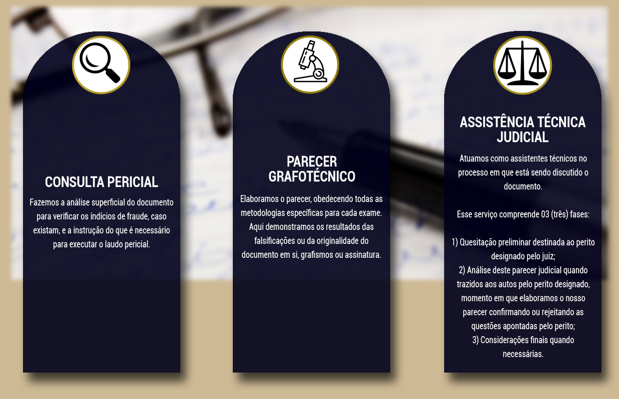 Realizamos perícias em documentos antigos, verificando a compatibilidade de datação do mesmo.